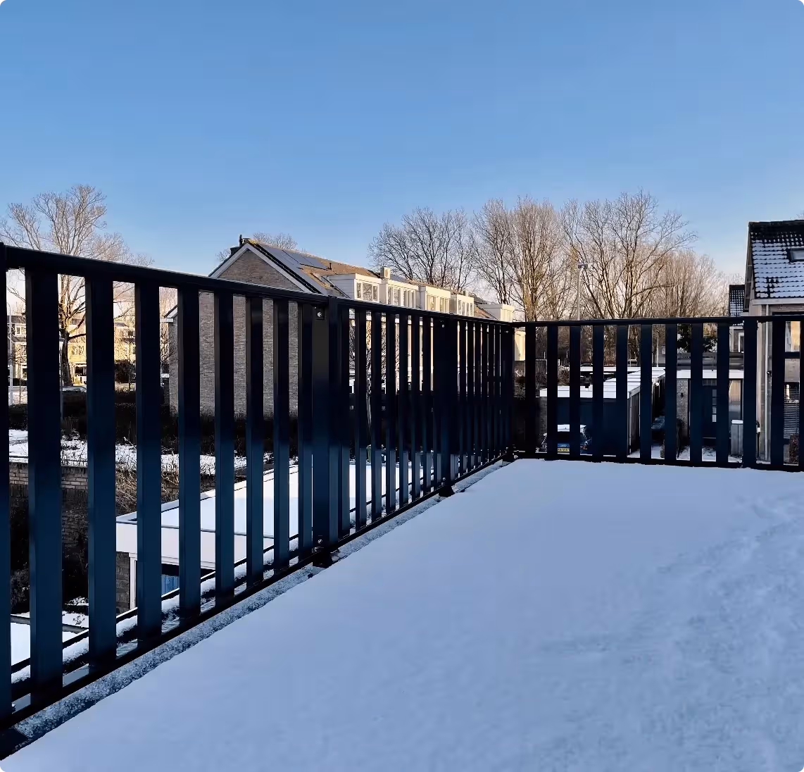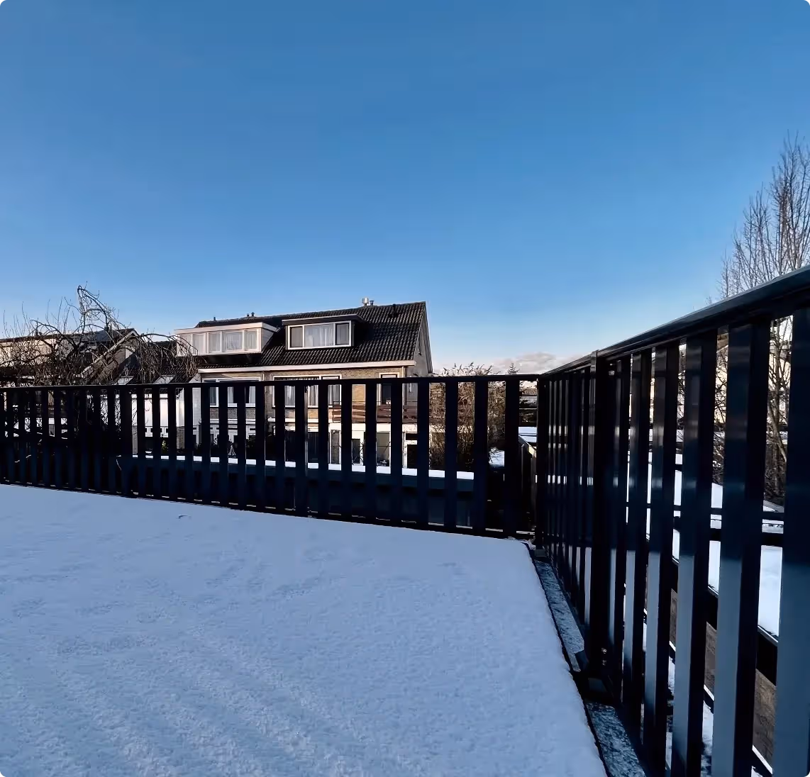 Langs de Haamstedestraat in Badhoevedorp hebben we ons Aluminium Hekwerk ASH- 2070 geïnstalleerd. Dit unieke hekwerk, met planken van 20 x 70 mm, straalt de charme uit van een klassiek planken hek. Het is geplaatst op het dak van de aanbouw en schuur, wat extra ruimte en karakter toevoegt aan de woning. Zowel de spijlen als de balusters hebben een afmeting van 70 mm, waardoor het geheel een harmonieus uiterlijk heeft. Dit hekwerk is afgewerkt met een duurzame 2- laags poedercoating in de RAL-kleur 7016. Op 30 november 2023 hebben we dit project succesvol opgeleverd, met een tevreden klant als resultaat. Neem een kijkje bij de foto’s en ontdek hoe ons hekwerk jouw huis kan transformeren!