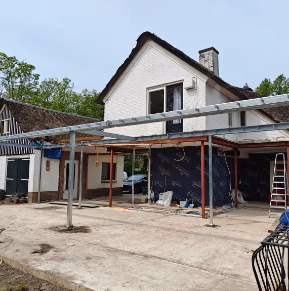 Aan de Hoogmadesweg in Leiderdorp hebben wij een woning voorzien van staal voor een grote uitbouw. Deze uitbouw wordt een buitenzit, waardoor het staal in aanraking komt met de buitenlucht. Daarom is het staal thermisch verzinkt om roestvorming te voorkomen en duurzaamheid te garanderen.